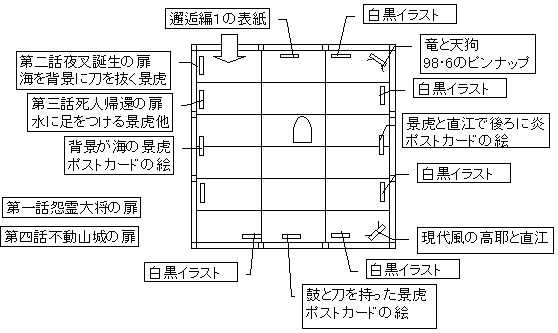 ・クローレスの白黒の原画が何点か廊下側(図解の上側)にあったはず。 |